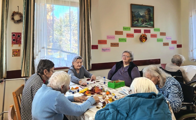Teljes átéléssel, a levelek, növények rácsodálkozásával dolgoztak lakóink. Örülnek nagyon, mikor látják a munkájuk gyümölcsét. Örülnek annak, hogy képesek még szépet varázsolni, főként a Természet ajándékaiból.